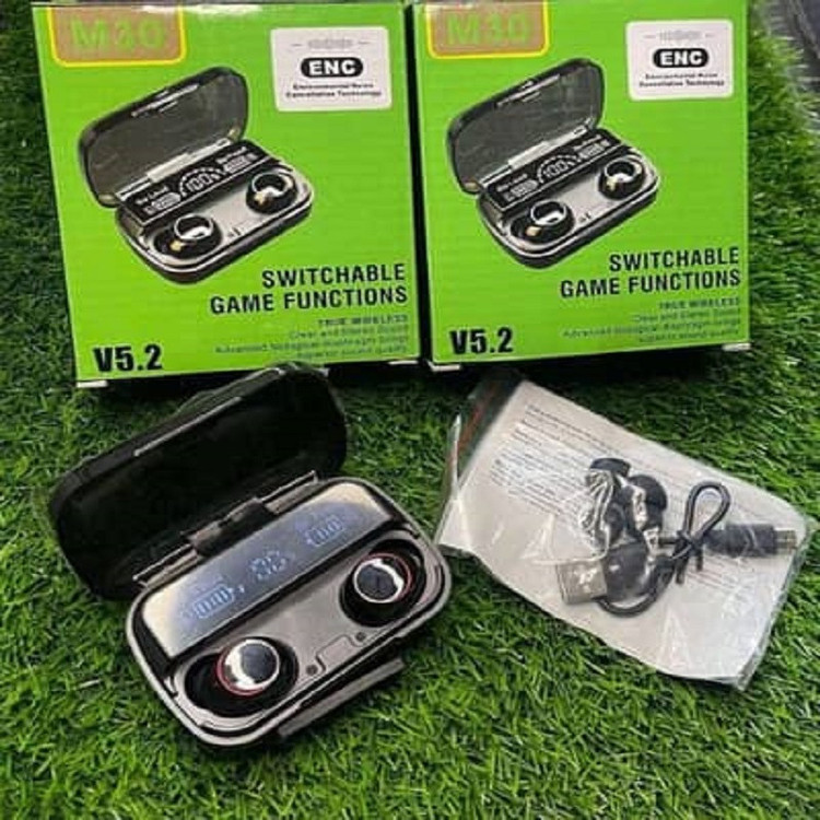 هندزفری بلوتوثی نسل جدید M30 علاوه بر ظاهر زیبا وجذاب اندازه کوچکتر وسبک تری دارد همچنین این محصول از بلوتوث نسل پنجم بهره می برد که مکالمه ای با کیفیت تر ودل نشین تر در اختیار استفاده کنندگان این محصول قرار داده و سرعت اتصال بالایی دارد.به علاوه این مدل دارای فناوری TWS می باشد فناوری استریو واقعی کیفیت مطلوبی در اختیار علاقه مندان به شنیدن موسیقی با کیفت و دوست داران بازی های یارانه ای قرار میدهد.علاوه بر این این هندزفری با باطری پاوربانک 300Ma سرعت بالایی در شارژ گوشی ها داشته و همچنین می توانید از آن به عنوان یک پاوربانک با قدرت برای شارژ گوشی خود استفاده کنید.ظاهر زیبا و جذاب این دستگاه بسیار چشم نواز می باشد.شما می توانید با مشاهده صفحه LED زیبای آن از مقدار شارژ پاوربانک و گوشی های هندزفری خود مطلع شوید.همچنین گوشی های کوچک و بسیار سبک این مدل کاملا لمسی است و میتوان با لمس آن گوشی ها را خاموش و یا روشن نمود همچنین میتوان به راحتی با لمس گوشی ها می توان وصل وقطع مکالمه و یا شروع و توقف موسیقی را کنترل نمود و حتی به راحتی با دوبار لمس هر طرف موسیقی قبل یا بعد را پخش کرد.همچنین این هندزفری مجهز به فناوری enc میباشد که باعث حذف نویز میشود