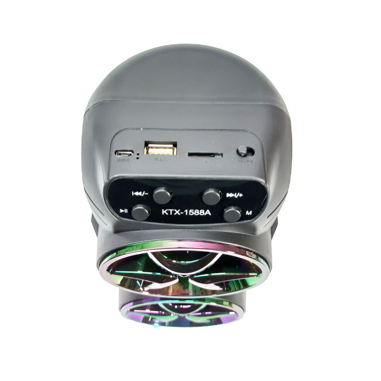 اسپیکر بلتوثی قابل حمل حاوی دو عدد اسپیکر 3 اینچی 5 وات است که با تغذیه باتری 1200 میلی آمپری تا 2 ساعت با 75 درصد ولوم قابلیت پخش مداوم را دارد.این اسپیکر دارای درگاه فلش تا 32 گیگابایت و مموری کارت تا 32 گیگابایت می باشد .این اسپیکر دارای قابلیت اتصال همزمان دو اسپیکر به هم یا همان TWS نیز هست.