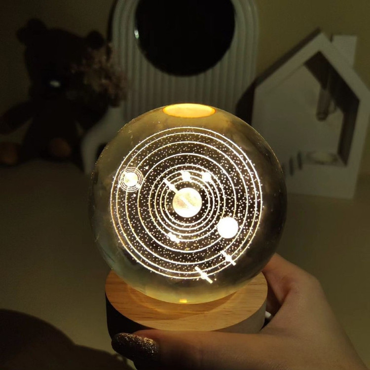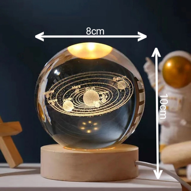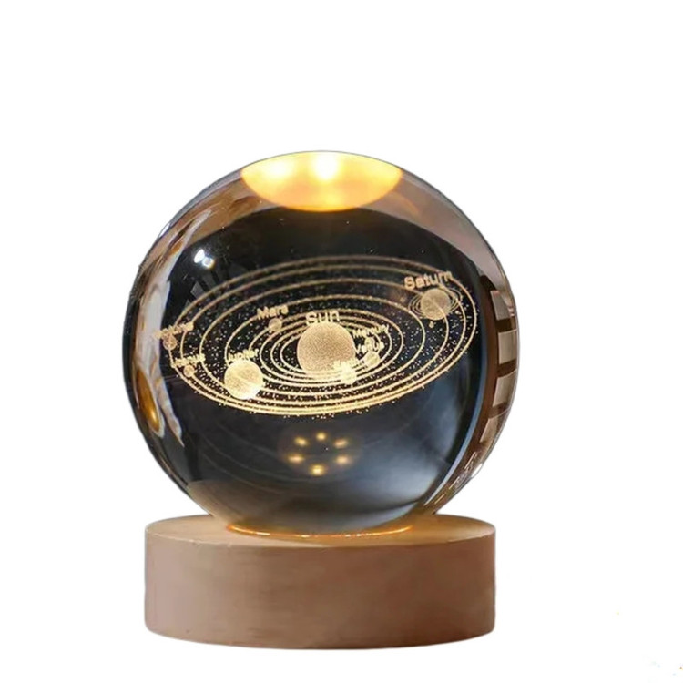 گوی کریستالی مدل منظومه شمسی با توجه با جزییات فوق العاده اعم از وجود تک تک سیارات منظومه شمسی همراه با نام انها گزینه مناسبی برای هدیه ب کسانی است ک عاشق فضا و اسمان هستند علاوه بر جزییات فوق العاده گوی کریستالی همراه با پایه نورانی عرضه می شود ک موجب زیبایی چند برابری گوی است و این مزیت هم برای شما فراهم می سازد ک ب عنوان یک چراغ خواب از ان بهرمند شویدراین پایه چوبی با سیم از طریق usb ب برق شهری متصل می شود و شما را از شارژ کردن های پیاپی رها می سازد و می توانید در طول شبانه روز از ان استفاده کنید