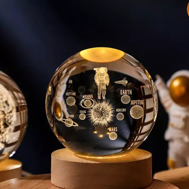 چراغ خواب مدل گوی کریستالی طرح فضانورد ومنظومه شمسی قطر 10 سانت